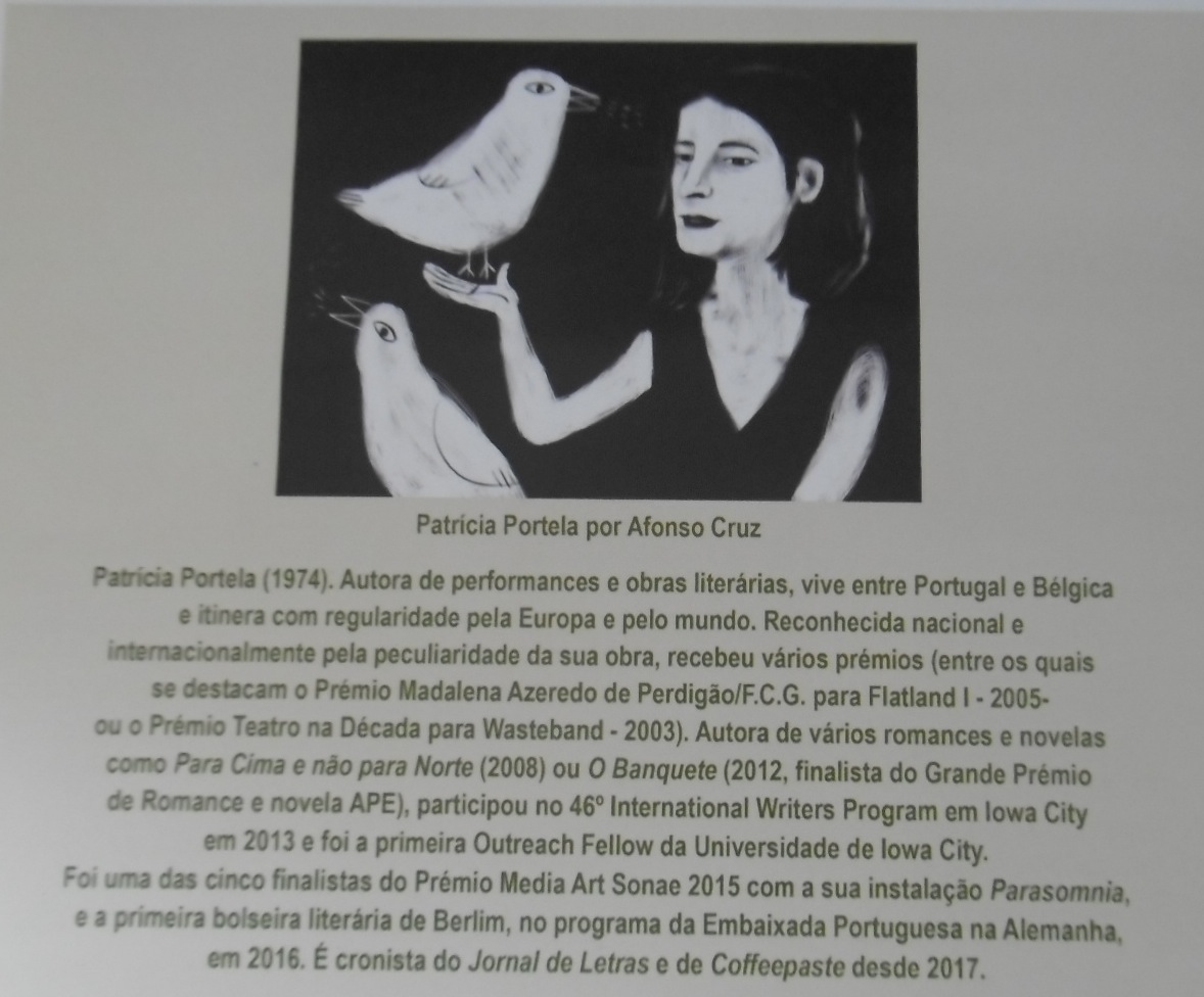 Das suas ligações a esses livros nos falou Patrícia Portela, desde o dia em que, com catorze anos, um tio-leitor e subvertor de cânones lhe pôs na mão um primeiro livro da nossa escrevente. A semente haveria de dar frutos, desviando-a de outras dependências mais acomodadas, num percurso artístico e de escrita em que a criação de mundos paralelos, a capacidade de «tornar a ausência presente», a construção de um «projecto do humano» próprio ou a transformação em escrita de uma «ordem figural do quotidiano» são desde há muito oferecidas por Patrícia Portela aos seus leitores e espectadores.