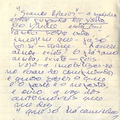 Mas a tal mulher, que não era ela, pôs-se a meu lado enquanto eu seguia e, a níveis e a entoações diferentes, falou-me da mesma paixão – a sua passagem através do verde, que não era a minha. Mas falávamos com muita verdade mútua, e encantamento pela expressão dos verdes, nos animais, nos homens, nas plantas verdejantes e nas coisas.